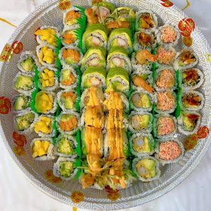 Sashimi (30pcs)Salmon, White Tuna, snapper, Red Tuna,Octopus,Crab Meat.Sushi (24pcs)Salomon, White Tuna, Shrimp, Snapper,BBQ Eel, Crab Meat, Red Tuna, Octopus.Maki Roll(36pcs) California Roll, Avocado Shrimp Tempura Roll, Spicy Crispy Salmon Roll,White Tuna Roll, Salmon Roll, Cucumber Roll.